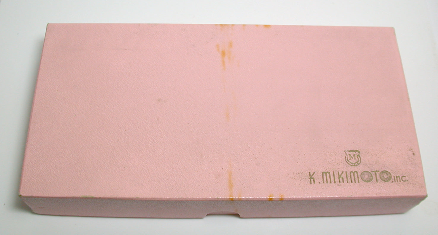 The necklace is complete with its original Mikimoto red and blue velvet and silk case, and outer pink cardboard case The pearls were sold by Mikimoto Inc, Ginza, Tokyo. The cardboard case shows signs of use.